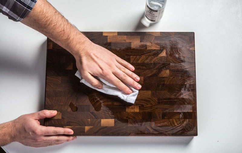 Always handwash with warm, soapy water and dry with a towel. Never soak, run in a dishwasher, or use in a microwave. Apply your choice of JK Adams wood conditioner weekly, with a lint free cloth, to all surfaces until the finish is established, and any time the board feels dry.
