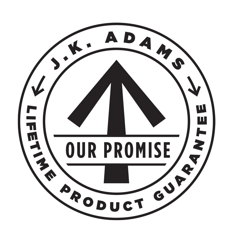 We stand by our product. Our goods come to you with a one hundred (100%) percent satisfaction guarantee. If you receive a damaged item, or find a manufacturer's defect on a JK Adams product, we will replace it. Not valid on items that are purchased second-hand. Please fill out your request at the link below.