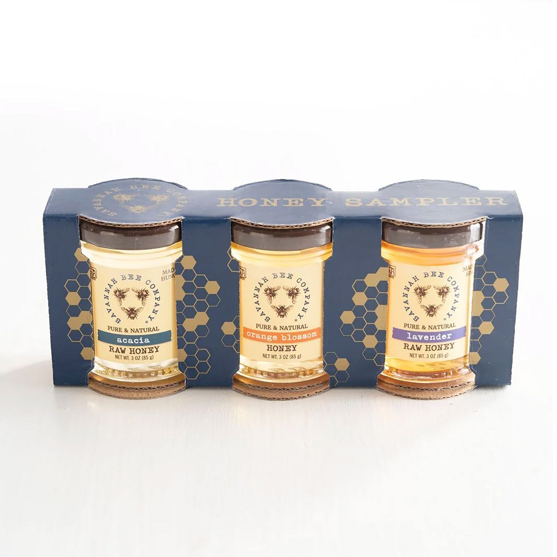 Give the perfect gift of natural sweetness and nourishment with this artisanal honey sampler, crafted from the Savannah Bee Company. This set of three includes Acacia, Orange Blossom and Lavender Honey in 3 oz jars. Experience the flavor of nature today!