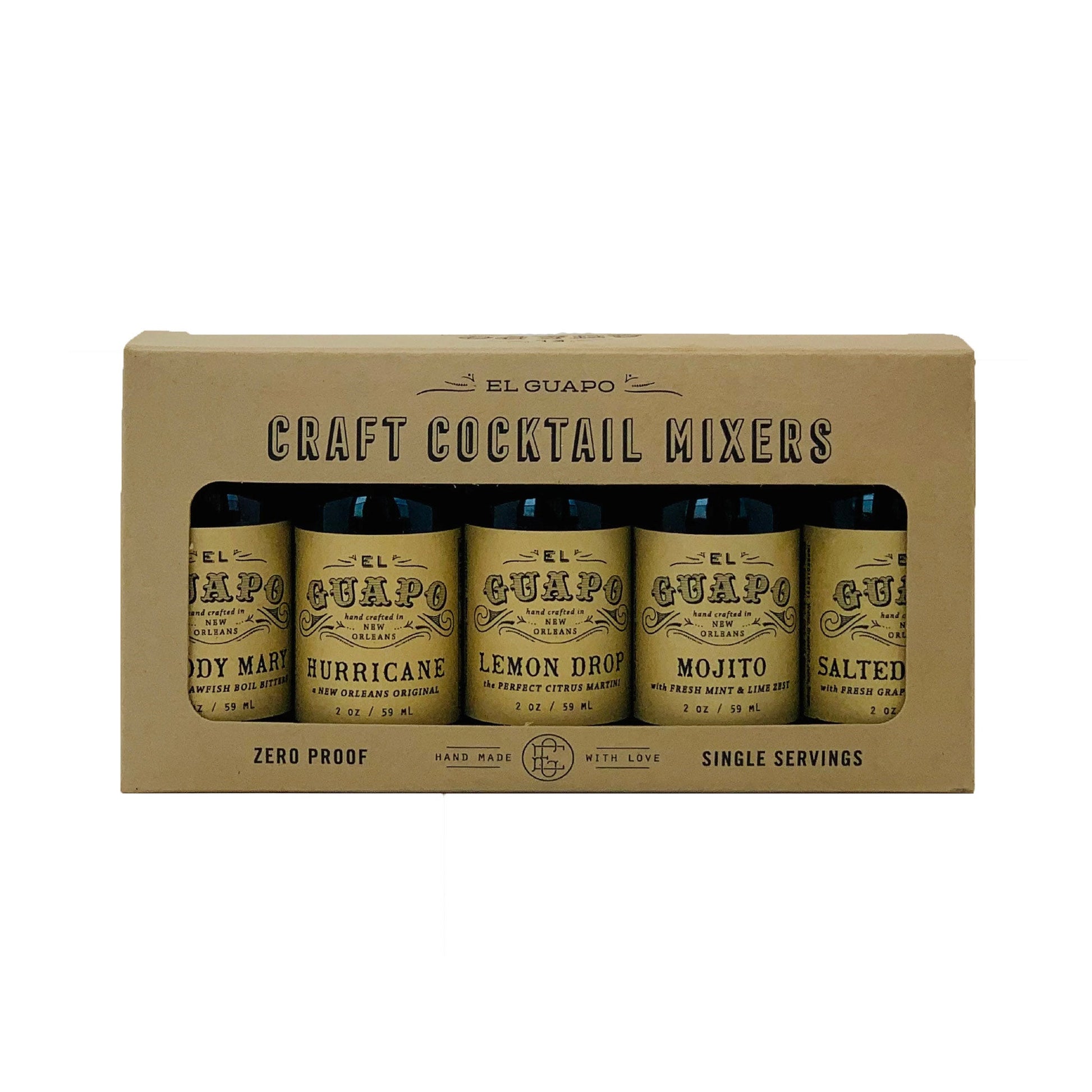 El Guapo is a small batch cocktail company from New Orleans. This single serve craft cocktail kit includes a single serving mixer for a Bloody Mary, Hurricane, Lemon Drop, Mojito, and Salted Paloma. Simply add booze and seltzer (tomato juice for the Bloody) to create a delicious cocktail. This makes a fun gift for someone to treat themselves with a delicious craft cocktail at home. Zero Proof.