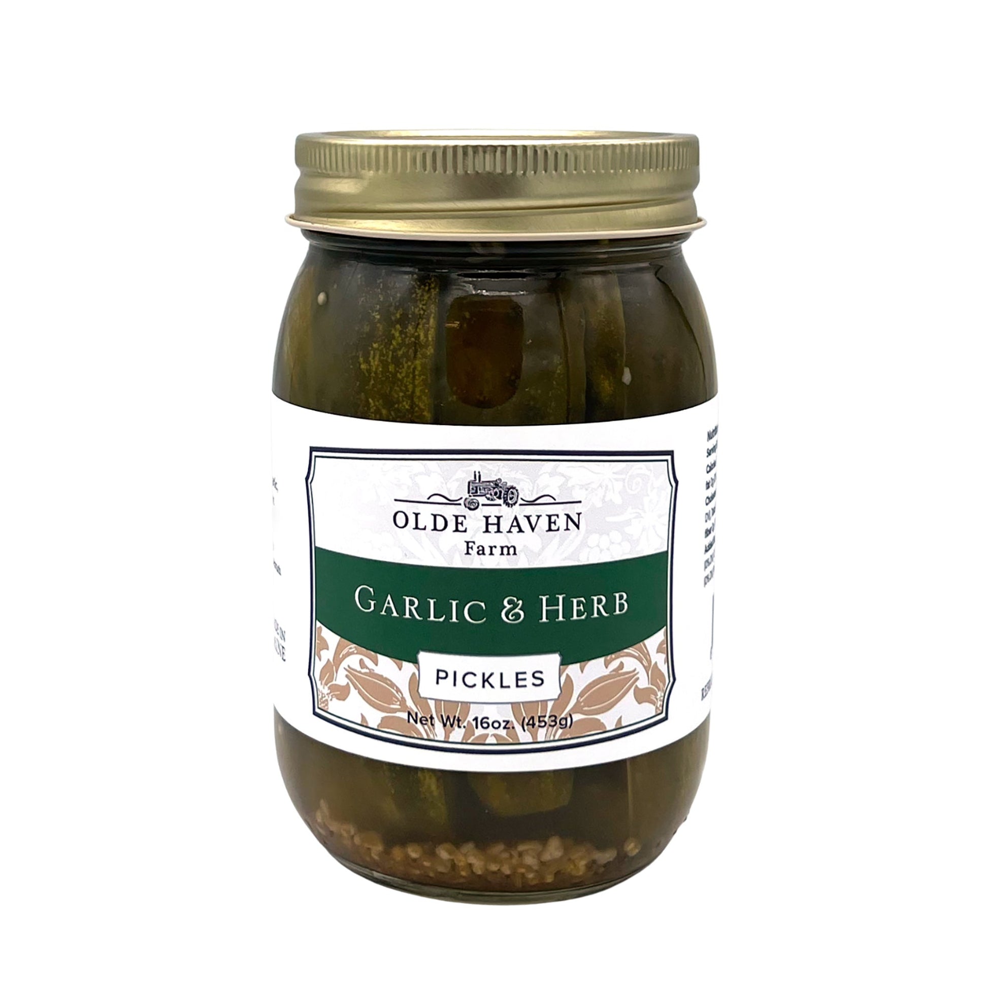 Introducing Garlic & Herb Pickles crafted in Maine with premium ingredients. Enjoy crisp, flavorful pickles made from the perfect blend of garlic and herbs, sure to enhance any meal or charcuterie board.