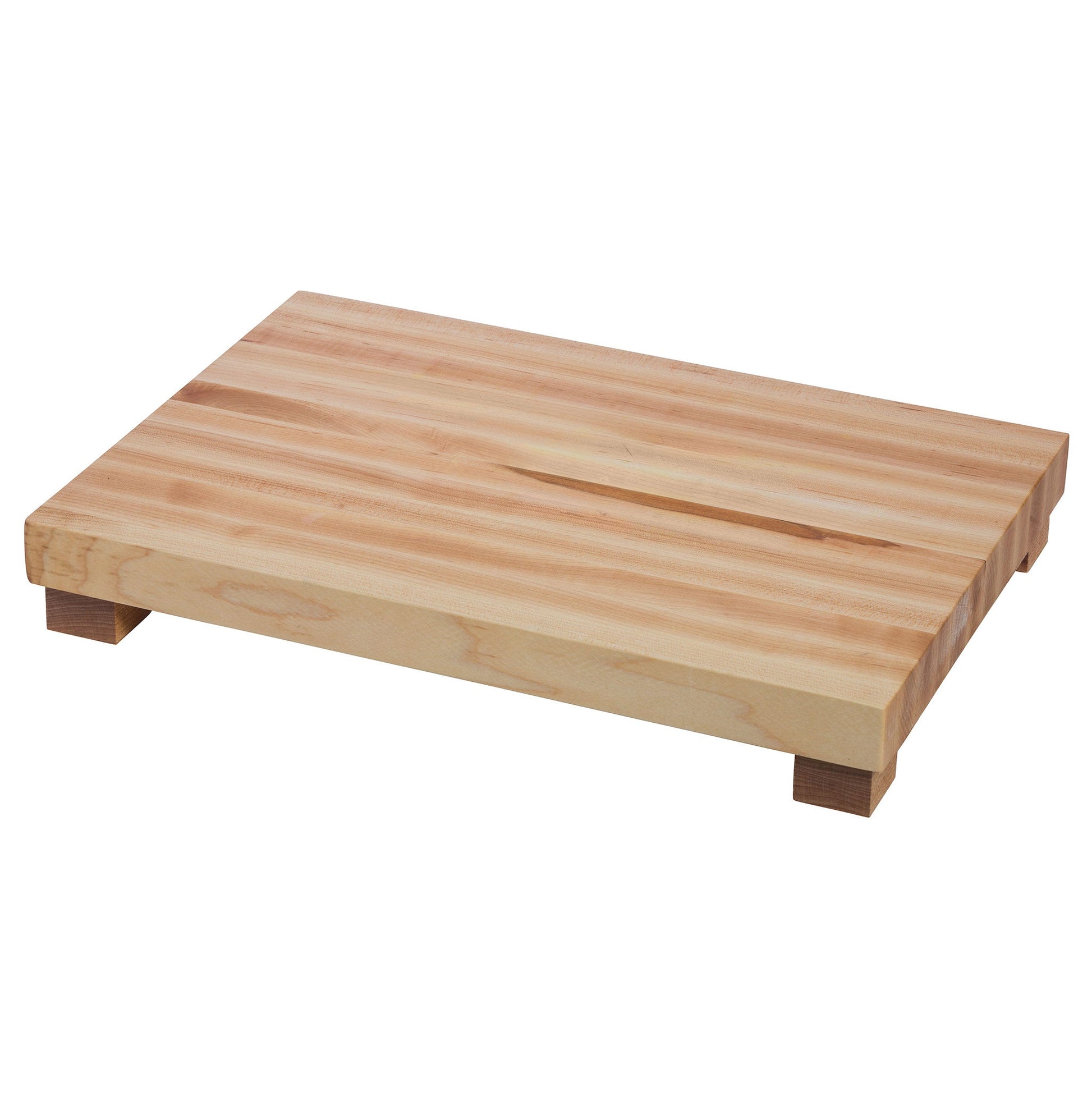 Our Heritage Dorset Block, 17" x 12", is an update on a classic JK Adams boards from the past. The board is built on 4 solid feet which allows air to circulate around the board. It is crafted of edge grain boards which mimics the construction of butcher block countertops. There is a slot underneath for knives and is accessible on the right or left.