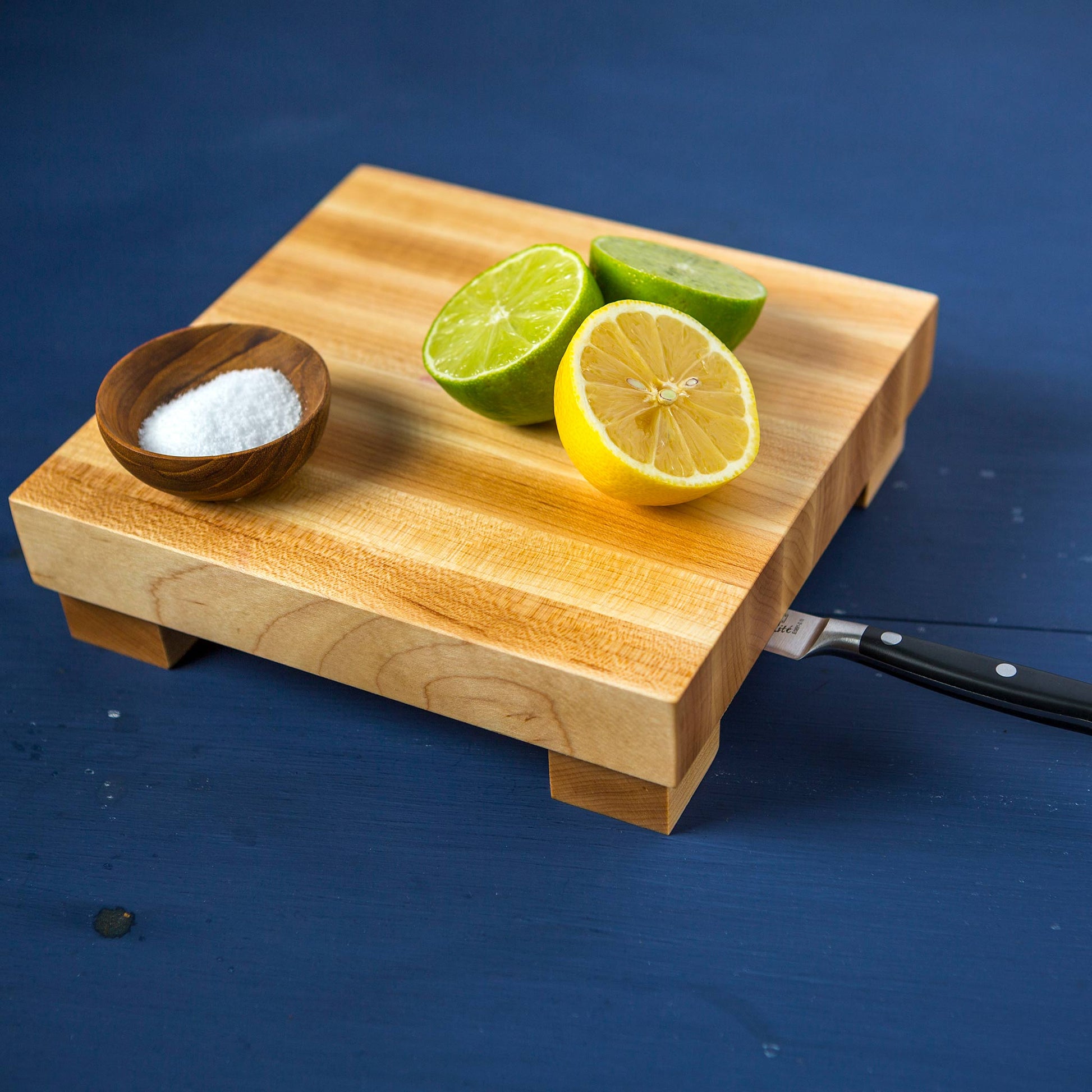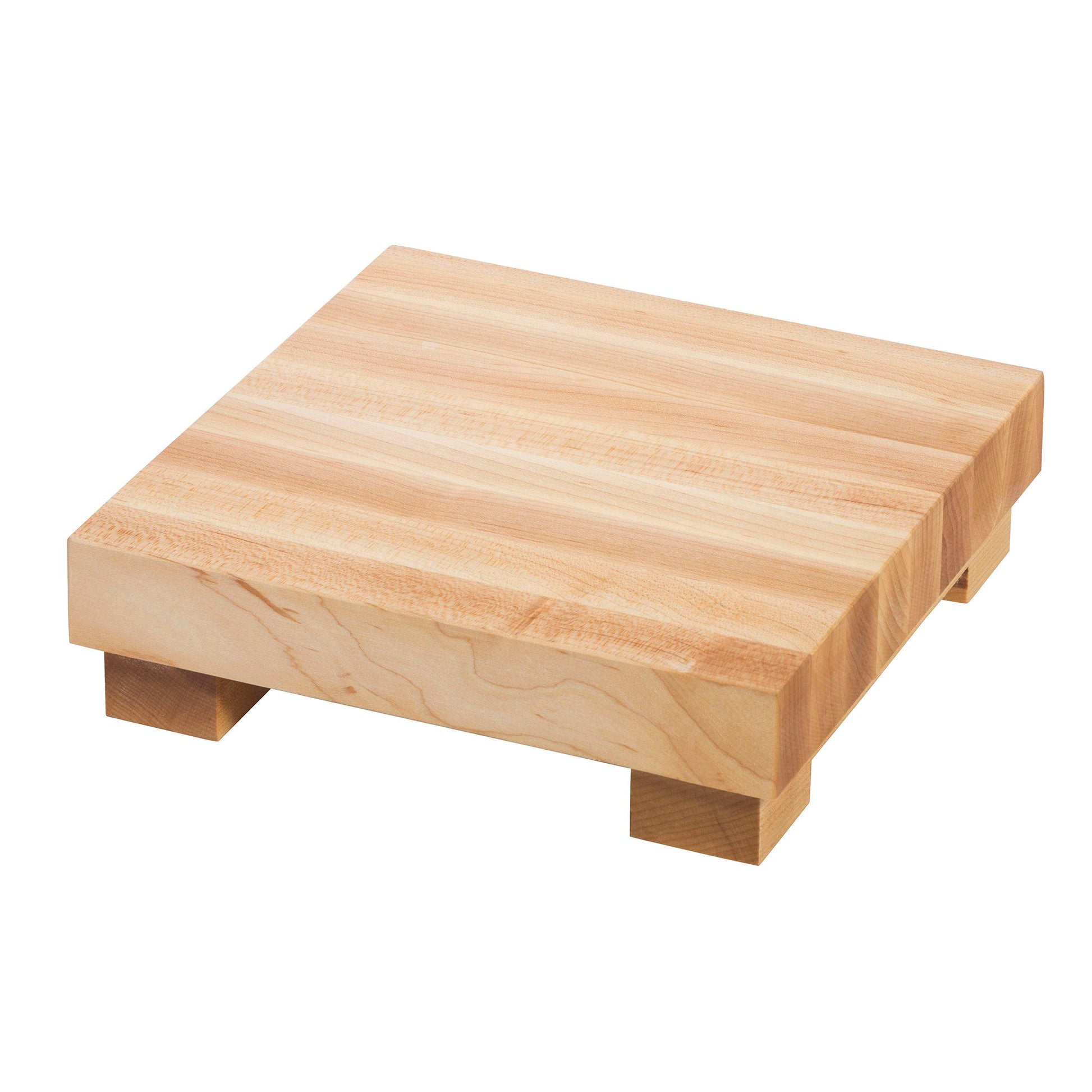 Our Heritage Dorset Block, 9"x 9", is our reference to JK Adams products from the past. The board is built on 4 solid feet which allows air to circulate around the board. There is a slot underneath for knives and is accessible on the right or left. This smaller sized board is a great addition to the bar or for highlighting a special cheese.