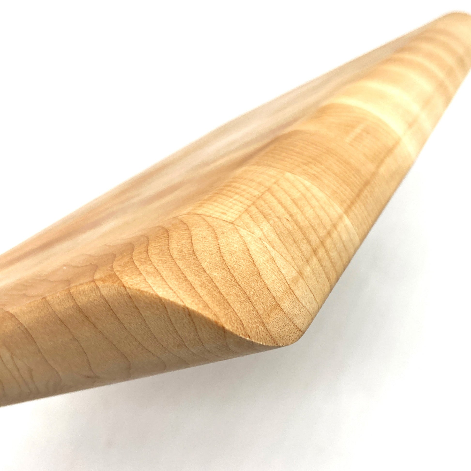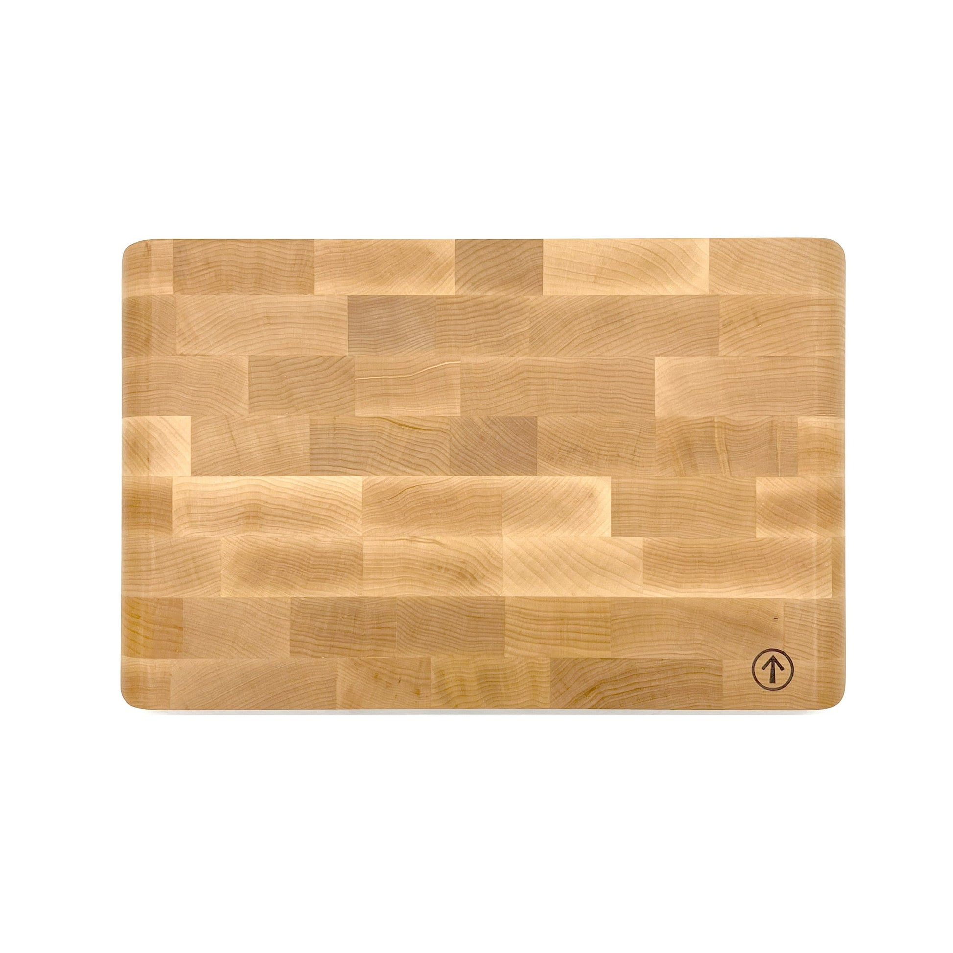 Expertly crafted with an end grain construction, the Infinity Edge End Grain Maple Board boasts superior durability and resistance to wear. Made from high-quality maple, this 16" x 10" board offers a smooth cutting surface and a professional touch to any kitchen. The rounded edges make this board easy to pick up on both sides. Say goodbye to dull knives and hello to precise cuts with this top-of-the-line cutting board. This stunning board will be your favorite for everyday prep and elegant serving.
