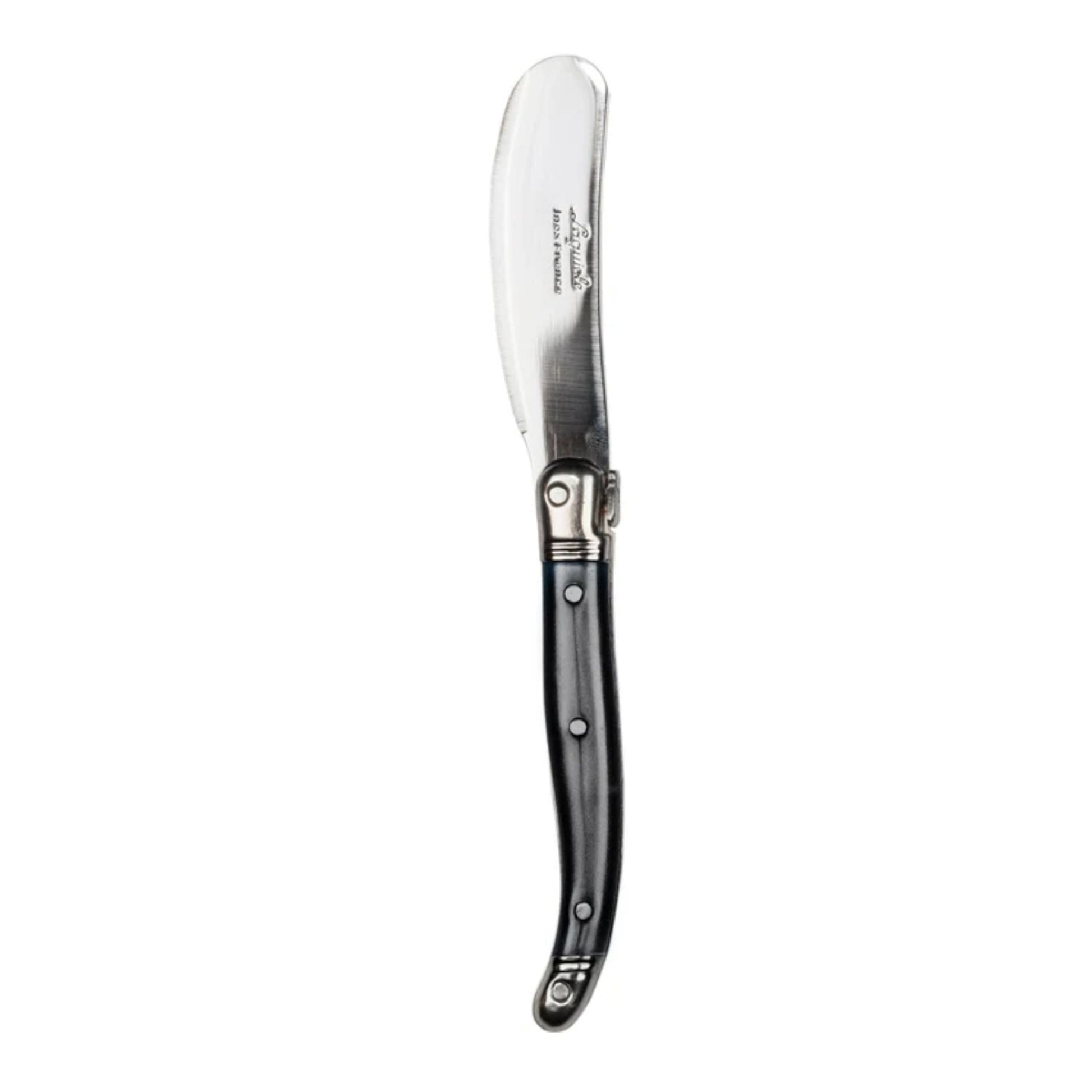 Crafted in France, this Laguoile cheese spreader is the ultimate tool for serving and spreading cheese. Its sleek black design adds a touch of elegance to any serving tray, while its expert craftsmanship ensures precise and easy spreading every time. Elevate your cheese platters with this high-quality tool.