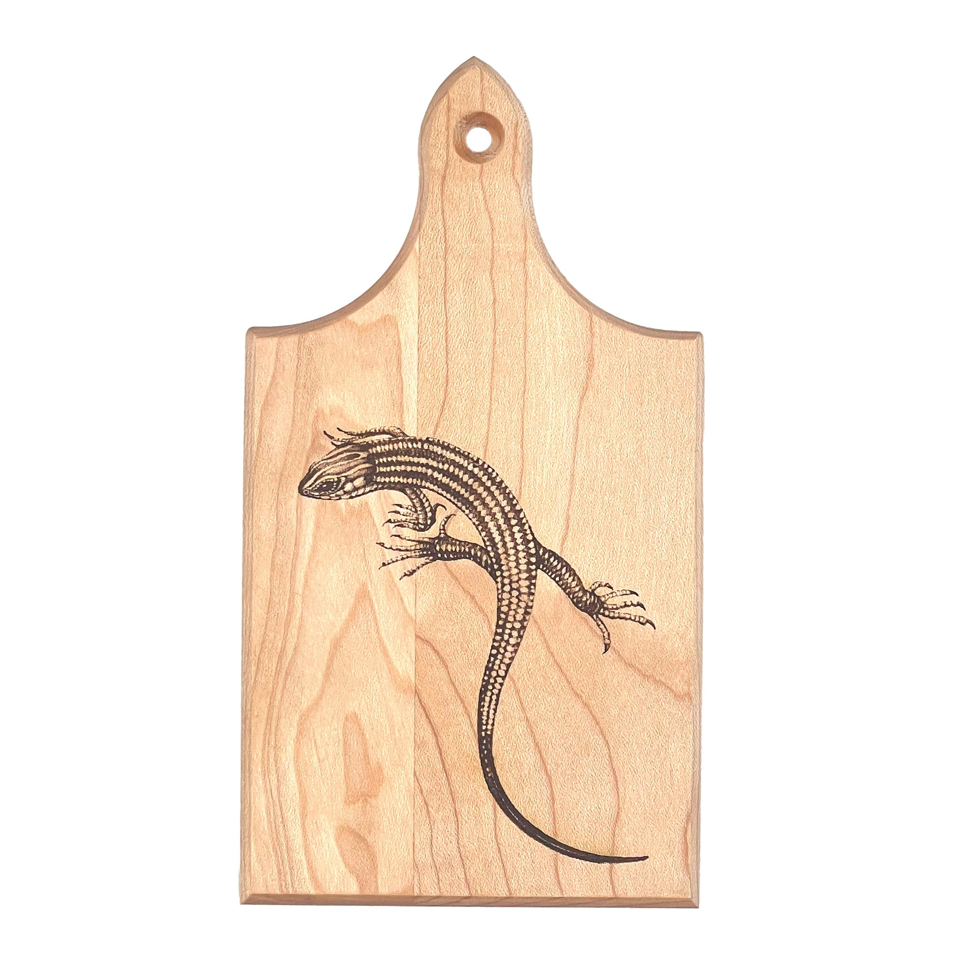 The Q-Tee board is a Vermont tradition dating back more than half a century. This cute, nostalgic board is perfect for simple tasks, like slicing fruit and cheese. We have updated this classic piece with the stunning artwork of Vermont Artist Laura Zindel. The board is engraved with a lizard.