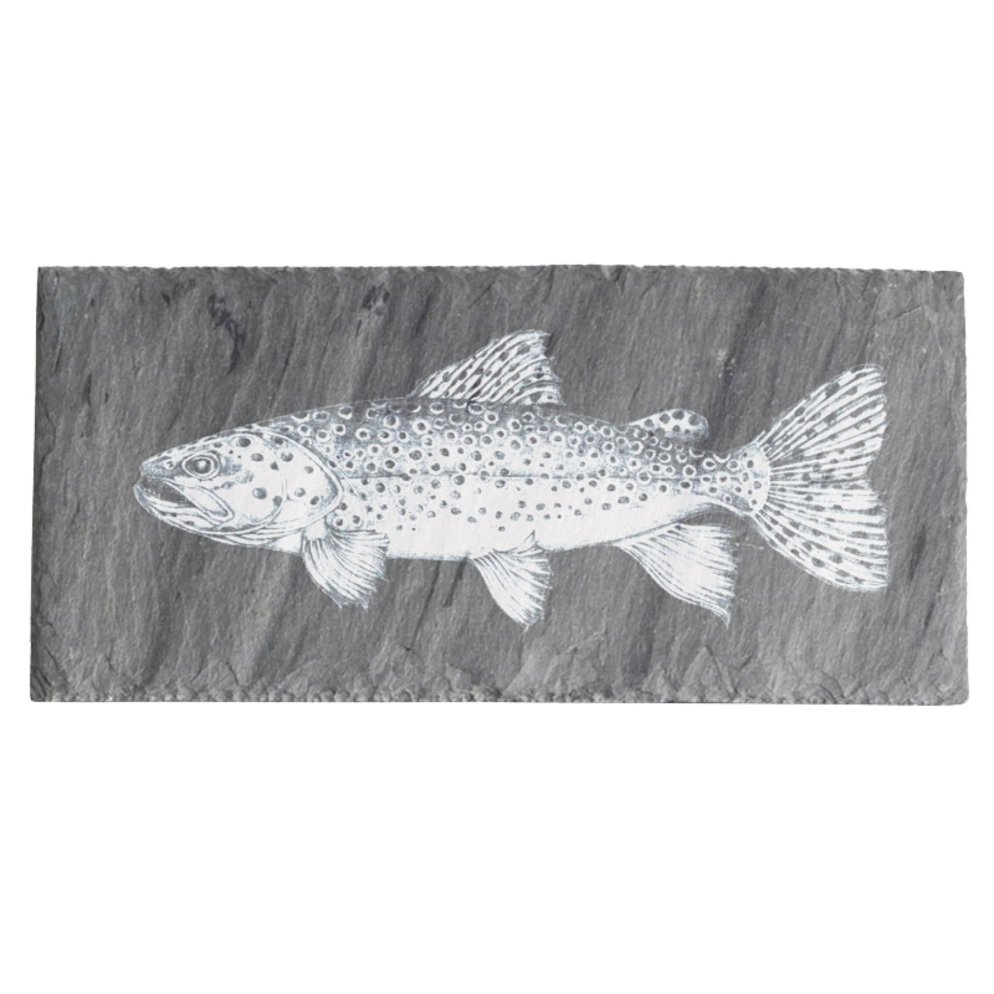 Our small rectangle slate has been engraved with a brown trout from the artwork of Vermont Artist Laura Zindel. This simple board is a unique way to serve everything from smoke trout pate to displaying a collection of beautiful hand tied flies.