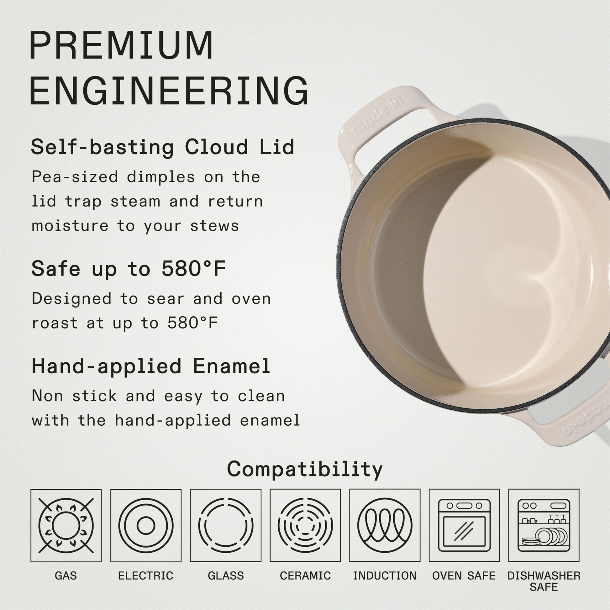 MADE IN Enameled Cast Iron 5.5 qt. Round Dutch Oven - Antique White
