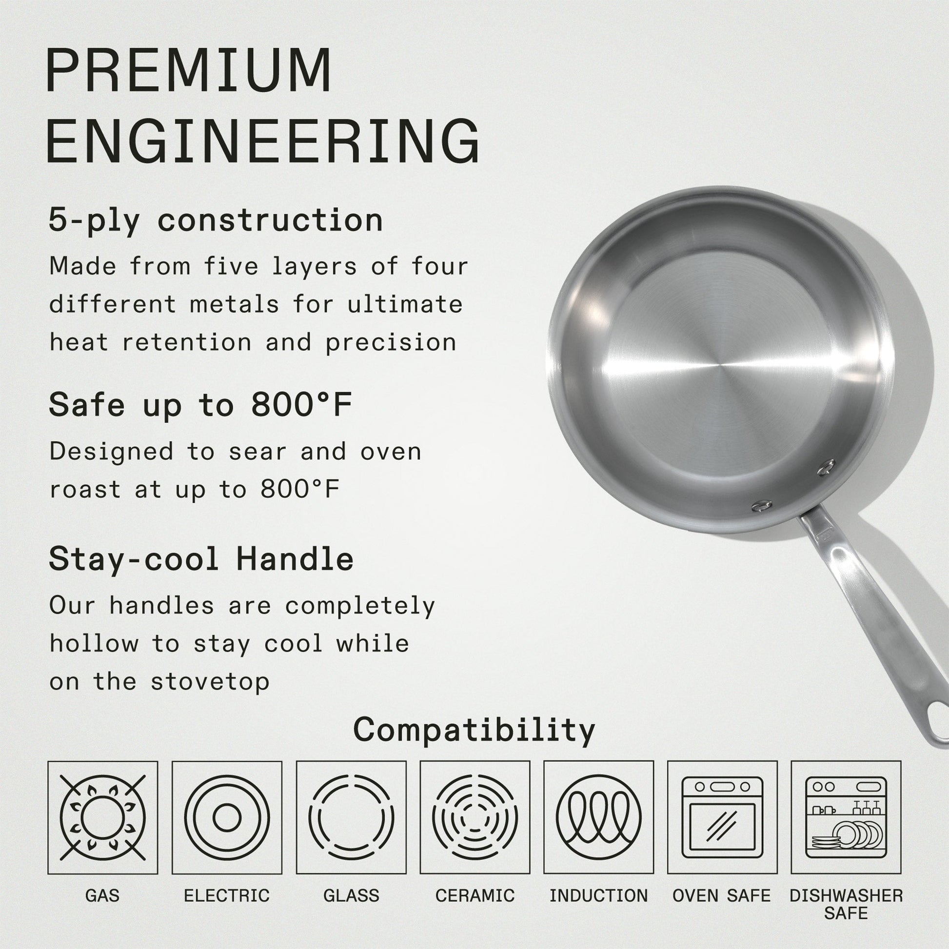 The Made In 12" Stainless Clad Fry Pan is a true kitchen workhorse. Crafted in Italy from 5 layers of metal, the Stainless Clad Frying Pan delivers a durable, easy-to-clean cooking surface with superior heat conduction and distribution.