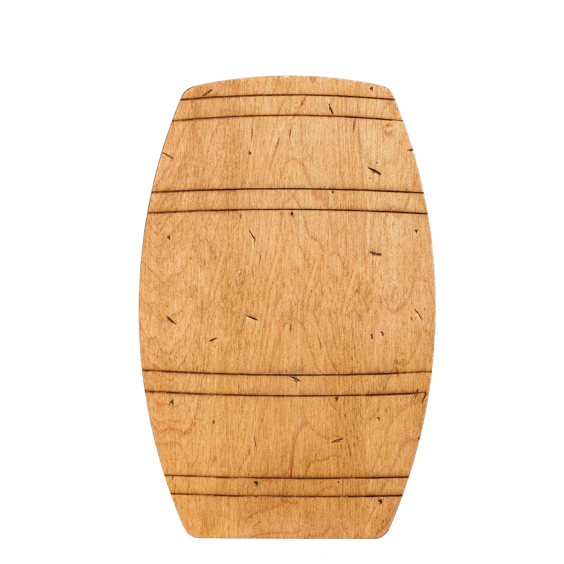 Our novelty maple barrel board celebrates the love of spirits from bourbon to wine. A great gift for those that love the taste of their favorite barrel aged drinks.