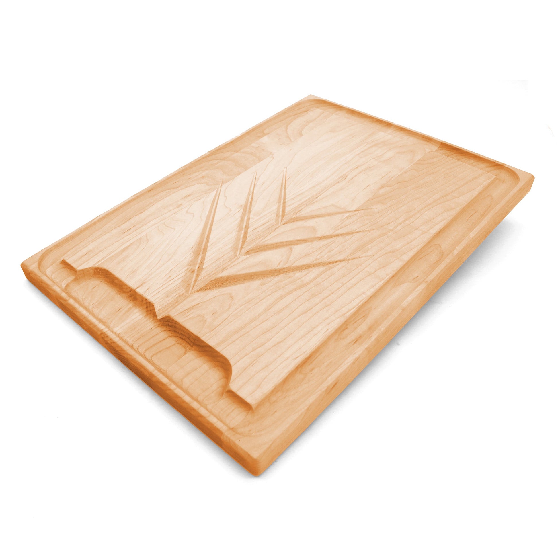 This 20" x 14" Maple Rectangle Carving Board is crafted from top-quality maple and features a deep juice groove to catch any excess liquid. The sturdy design allows for easy carving and keeps your countertops clean. Professional-grade and durable, this carving board is essential for any home cook or chef.