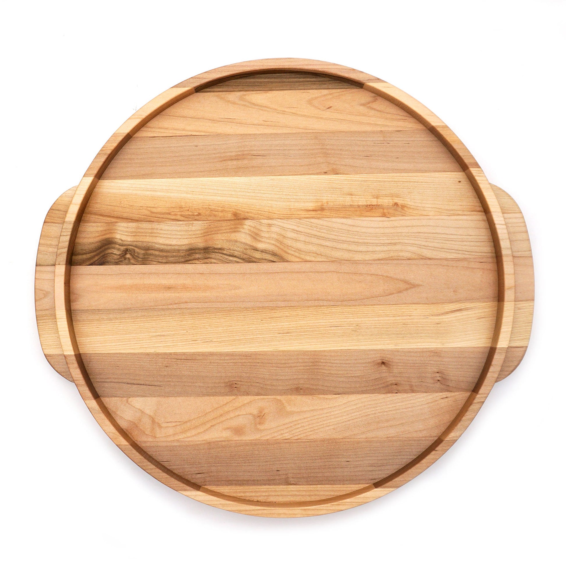 Experience the beauty of maple with our 18" round wooden serving tray. The natural maple wood and sturdy handles make it the perfect choice for serving guests or decorating your living space. Made with quality craftsmanship and designed to elevate your entertaining game.
