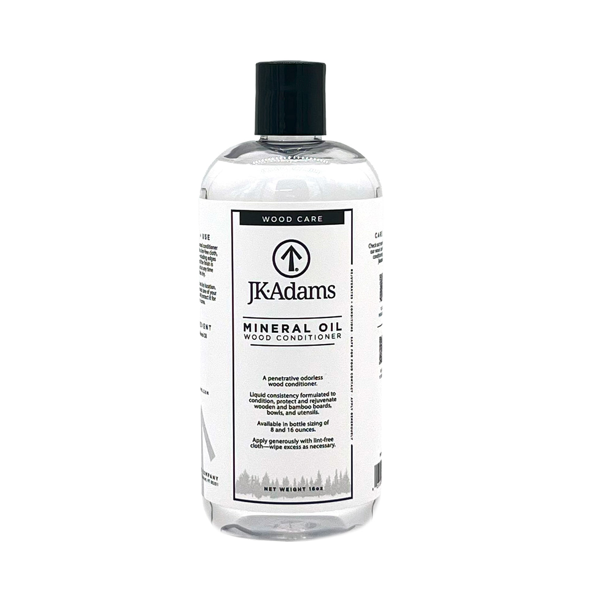 Mineral oil is a traditional cutting board oil that will help to condition the wood. Mineral oil is a classic butcher block conditioner. We recommend applying our mineral oil with a soft cotton cloth to rub the oil into the wood. Apply mineral oil more frequently in the winter months and or drier climates. When your board is rough to the touch apply mineral oil to condition and hydrate the wood. Our mineral oil has a plastic flip top to make application a breeze. Mineral oil will condition the wood and ensure your JK Adams' pieces can be used and enjoyed for a lifetime.