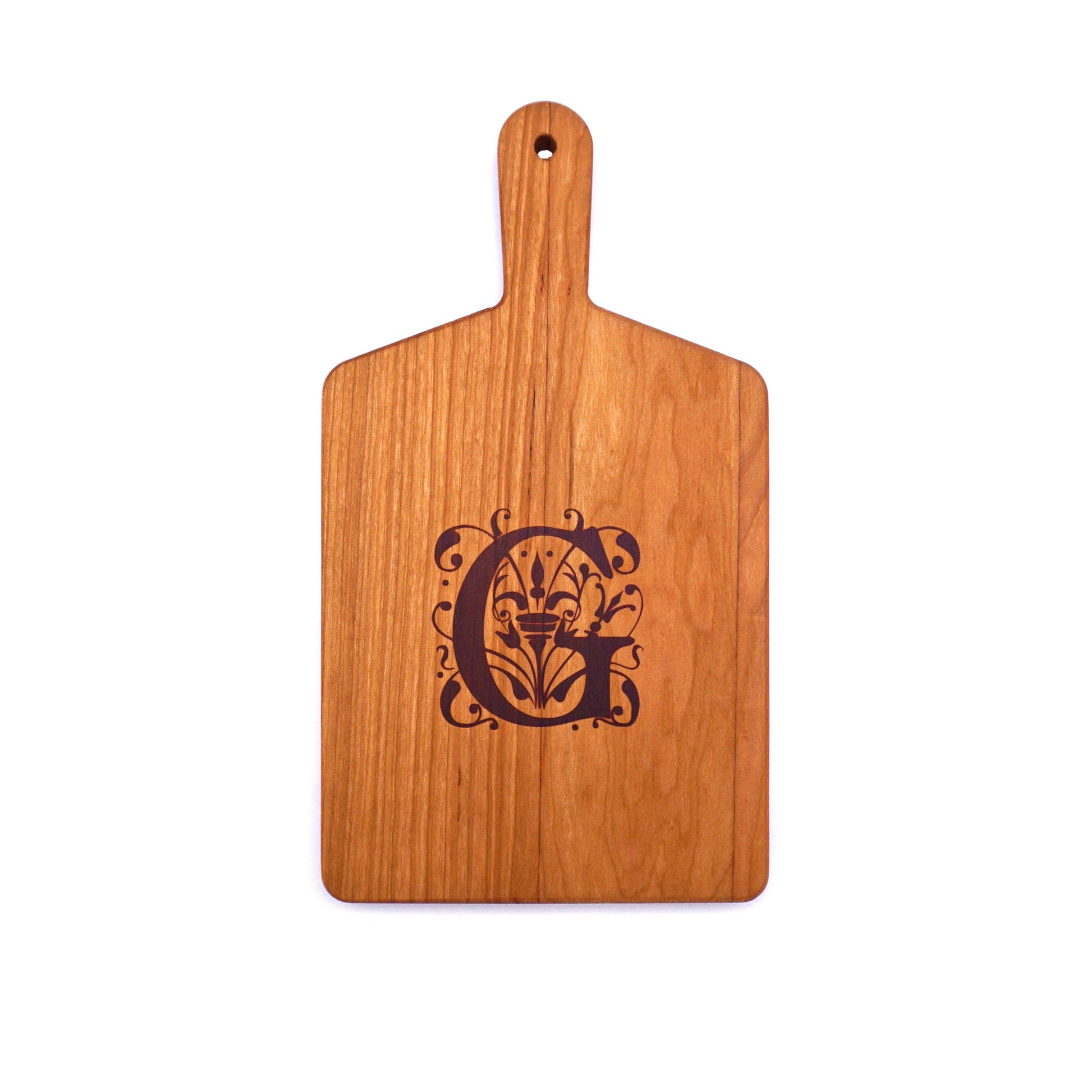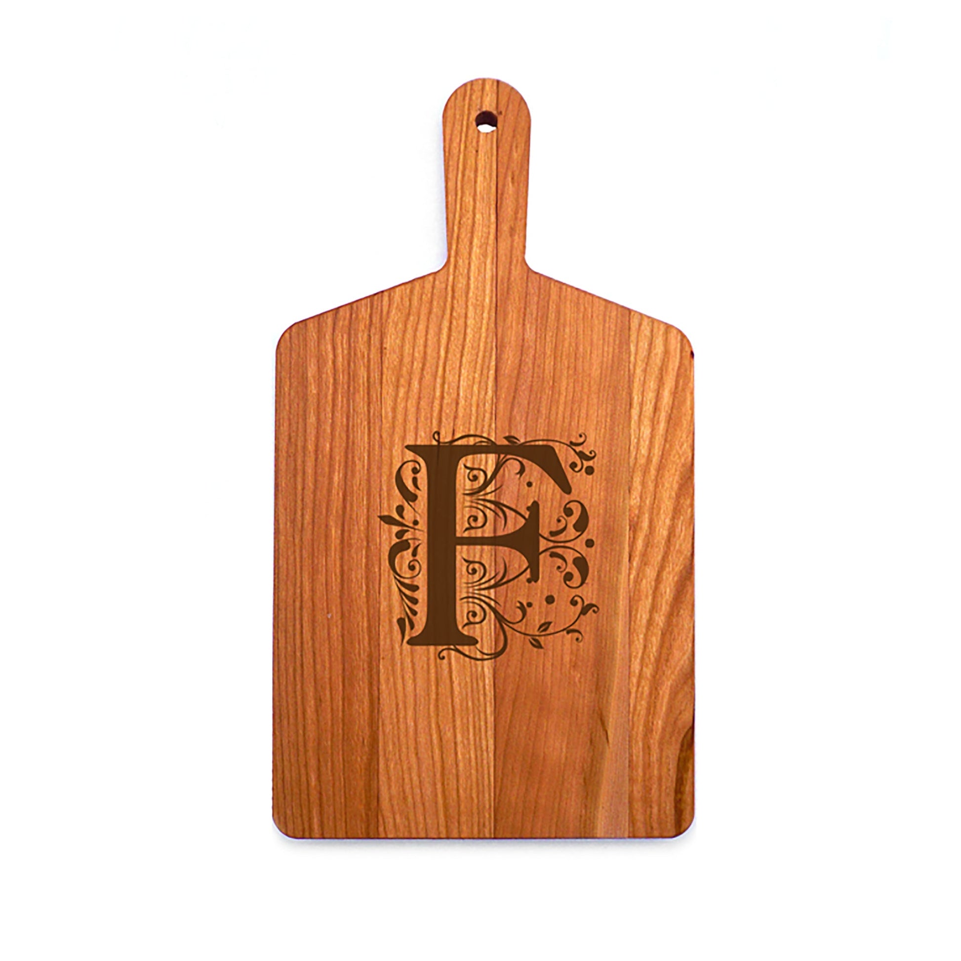 Our Monogrammed Cherry Cheese board makes a great gift for a thank you, hosts, birthdays, bridal showers and gifts for the bridal party. Each board is monogrammed with an intricate letter. Each board comes tied with a black grosgrain ribbon.