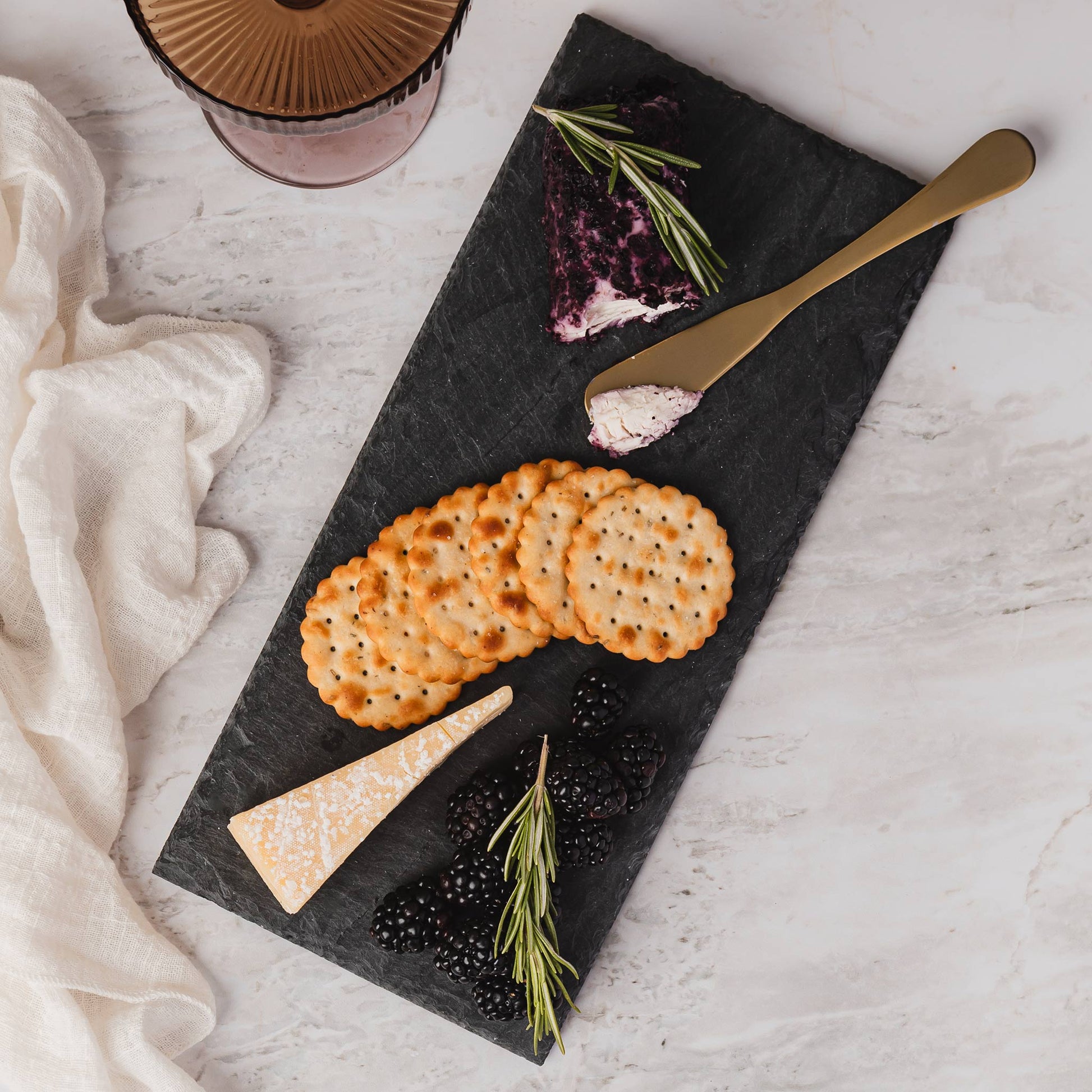 Our Small Rectangle Slate Server is a wonderful way to serve a single variety of cheese or a delicious appetizer. Also, a great way to display candles or soaps and lotions. Our natural slate is food safe and easy to clean. Includes a soapstone pencil to write directly on the slate.