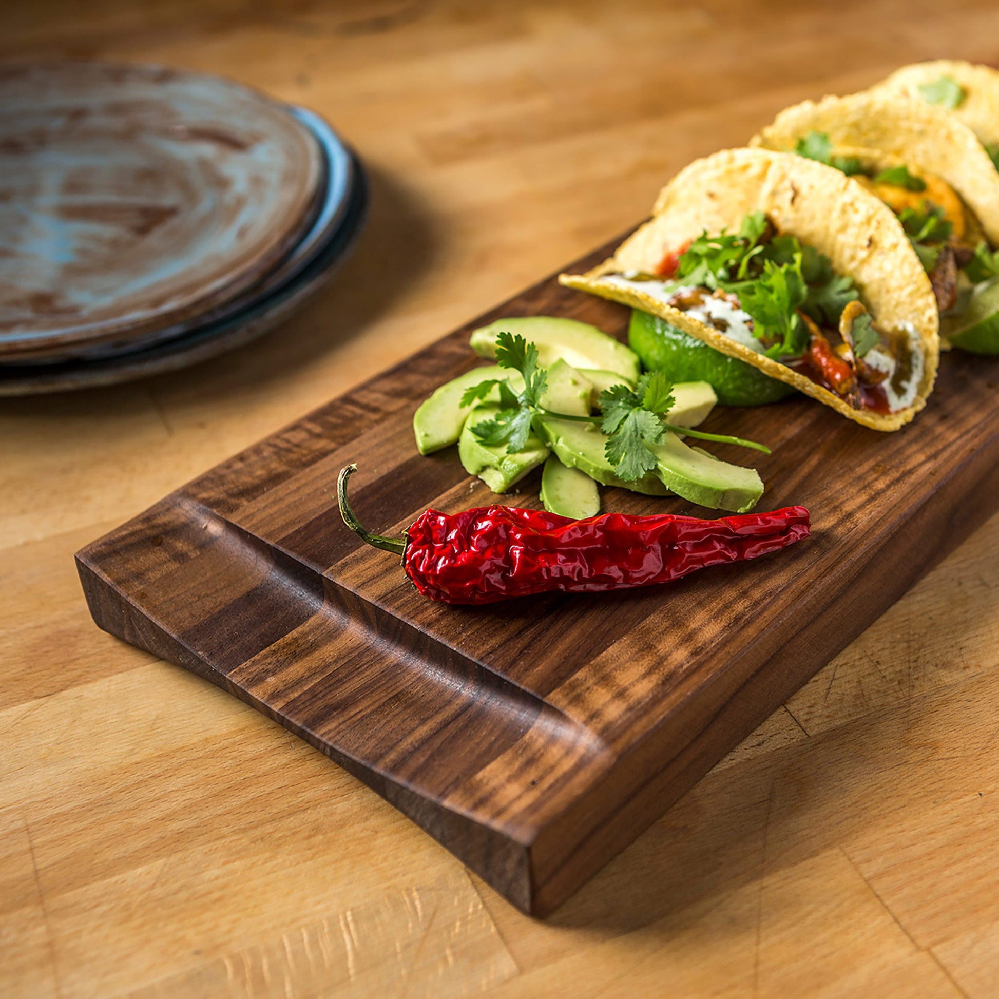 In contrast to plastic, composite, or even glass cutting boards, wood is a natural and renewable material that is innately anti-microbial. Wood is able to naturally dry, and further kill bacteria, while other materials can harbor and encourage bacterial growth.